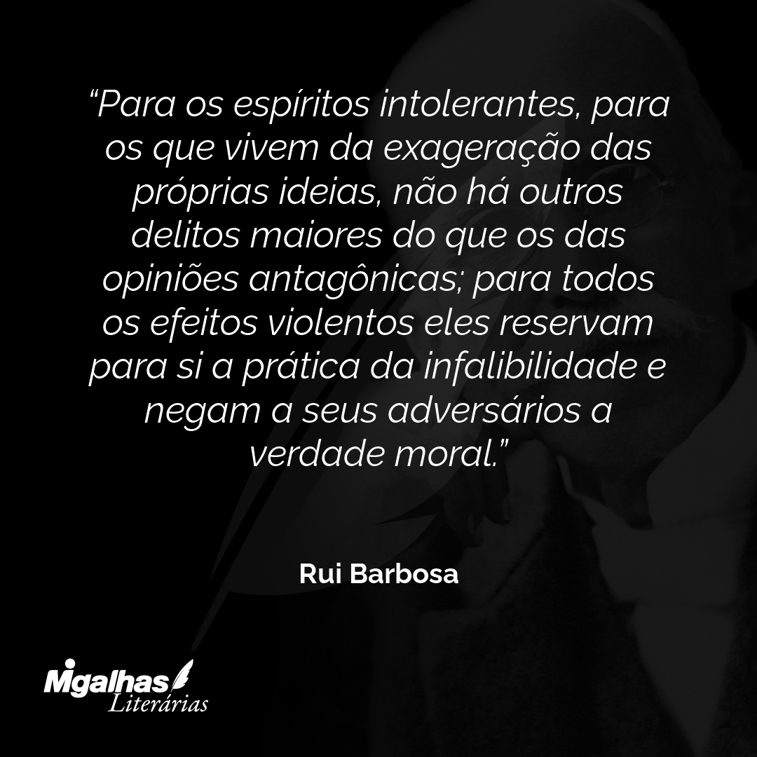 Para os espíritos intolerantes, para os que vivem da exageração das próprias ideias, não há outros delitos maiores do que os das opiniões antagônicas; para todos os efeitos violentos eles reservam para si a prática da infalibilidade e negam a seus adversários a verdade moral.