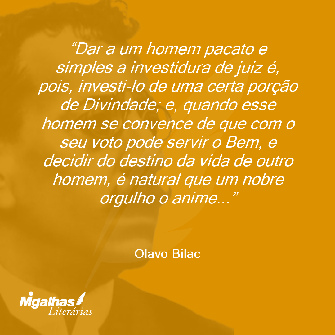 Dar a um homem pacato e simples a investidura de juiz é, pois, investi-lo de uma certa porção de Divindade; e, quando esse homem se convence de que com o seu voto pode servir o Bem, e decidir do destino da vida de outro homem, é natural que um nobre orgulho o anime...