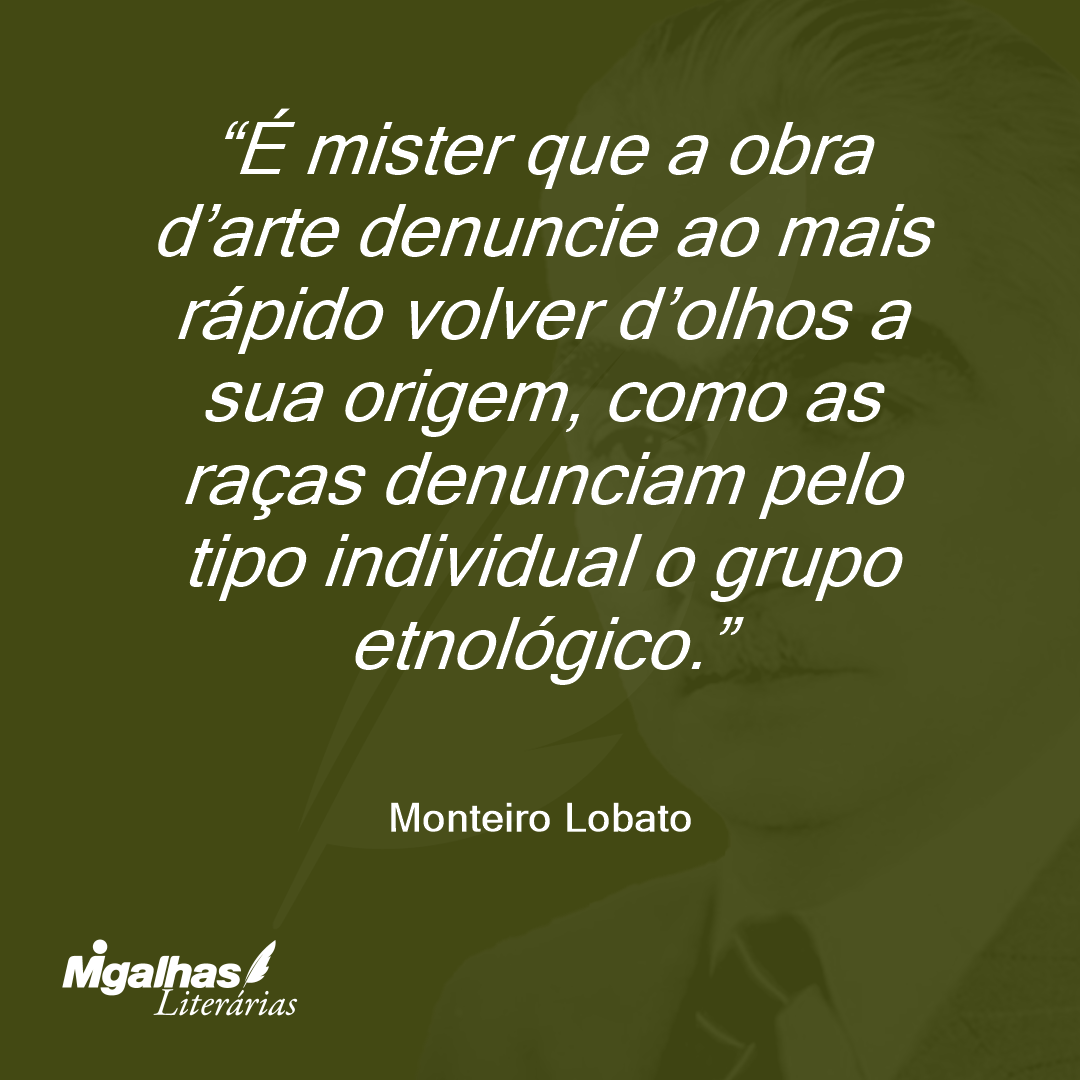 É mister que a obra d’arte denuncie ao mais rápido volver d’olhos a sua origem, como as raças denunciam pelo tipo individual o grupo etnológico.