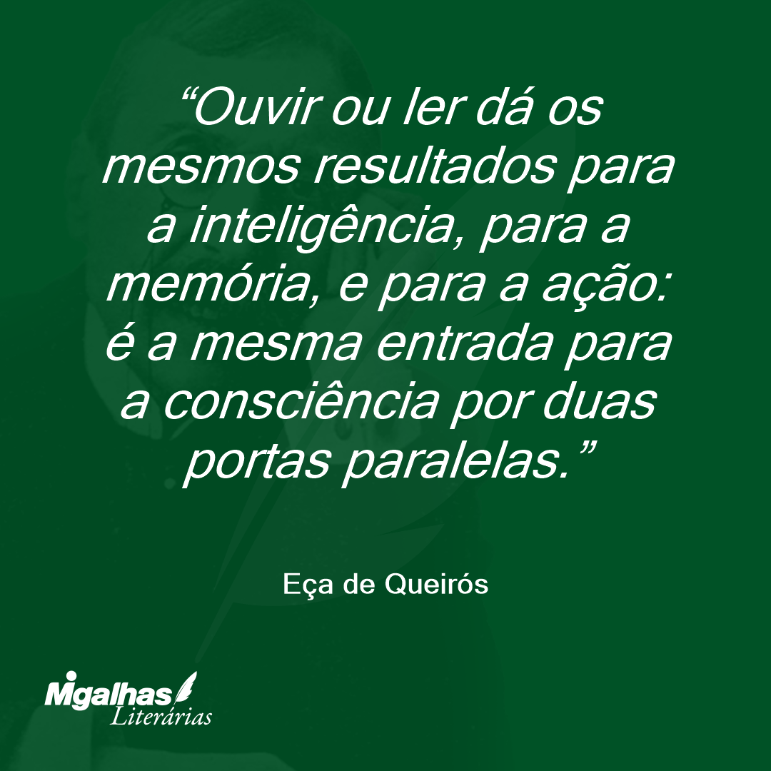 Ouvir ou ler dá os mesmos resultados para a inteligência, para a memória, e para a ação: é a mesma entrada para a consciência por duas portas paralelas.