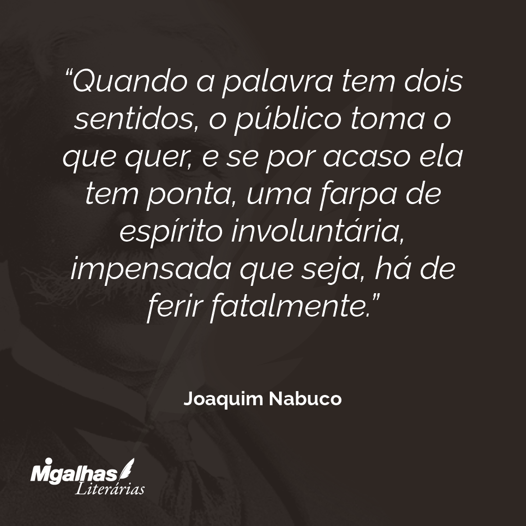 Quando a palavra tem dois sentidos, o público toma o que quer, e se por acaso ela tem ponta, uma farpa de espírito involuntária, impensada que seja, há de ferir fatalmente.