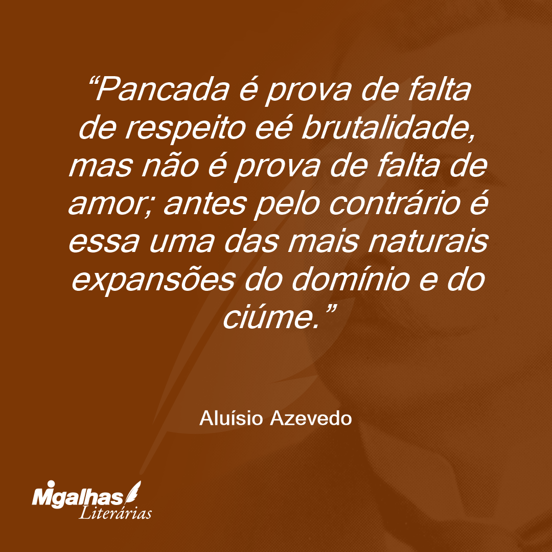 Pancada é prova de falta de respeito eé brutalidade, mas não é prova de falta de amor; antes pelo contrário é essa uma das mais naturais expansões do domínio e do ciúme.