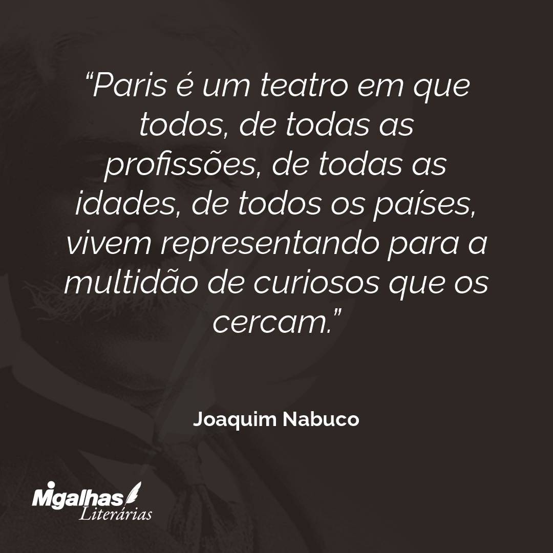Paris é um teatro em que todos, de todas as profissões, de todas as idades, de todos os países, vivem representando para a multidão de curiosos que os cercam.