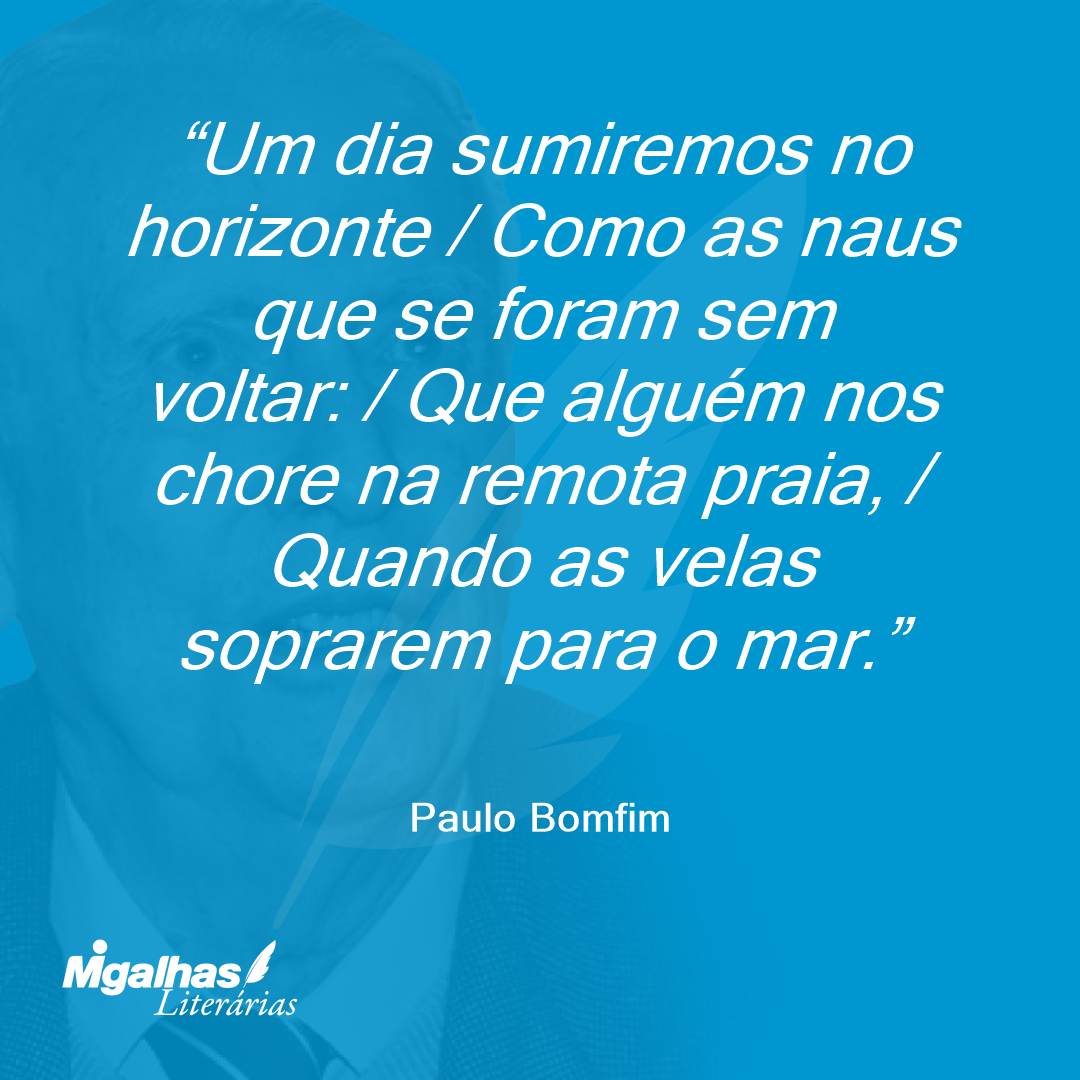 Um dia sumiremos no horizonte / Como as naus que se foram sem voltar: / Que alguém nos chore na remota praia, / Quando as velas soprarem para o mar.