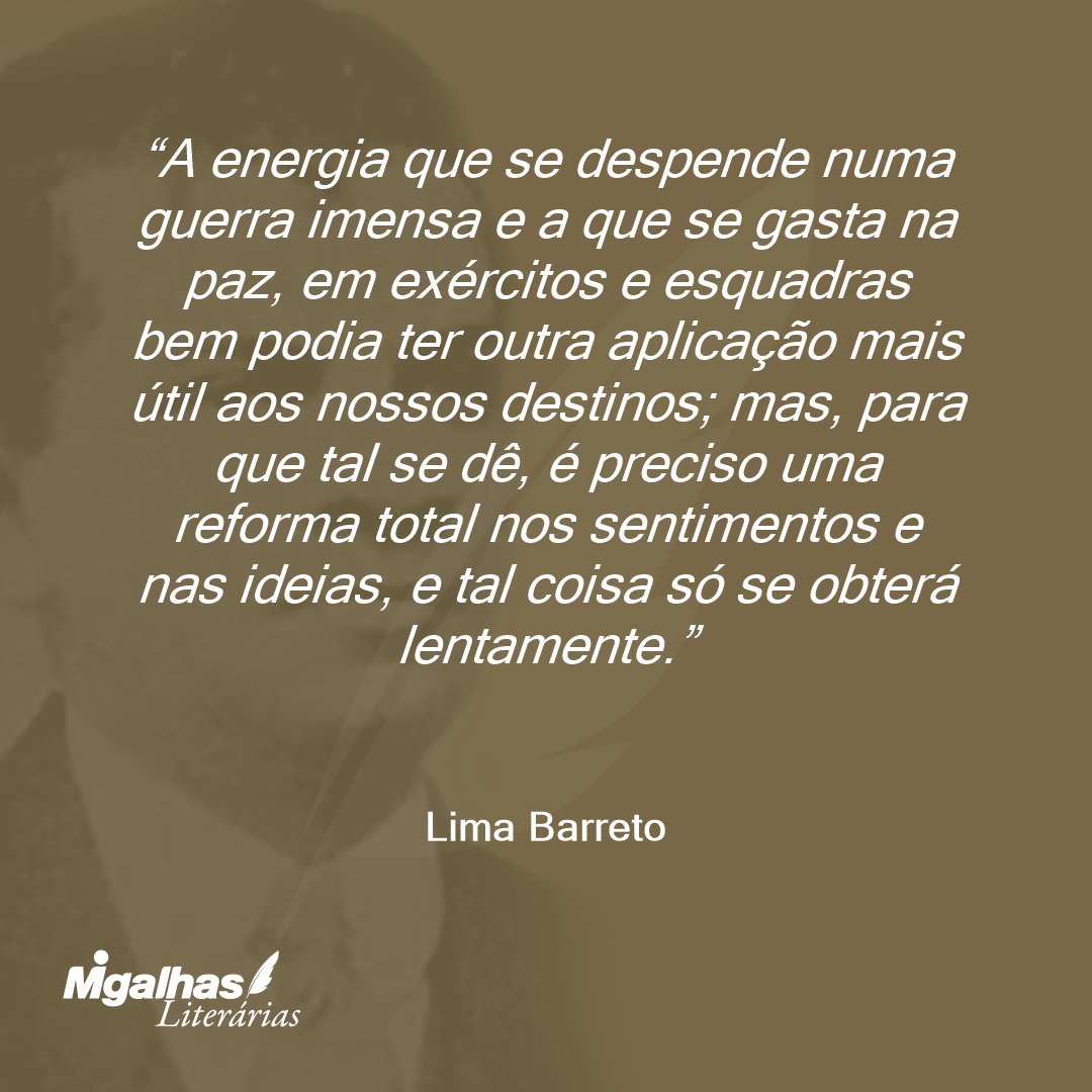 A energia que se despende numa guerra imensa e a que se gasta na paz, em exércitos e esquadras bem podia ter outra aplicação mais útil aos nossos destinos; mas, para que tal se dê, é preciso uma reforma total nos sentimentos e nas ideias, e tal coisa só se obterá lentamente.