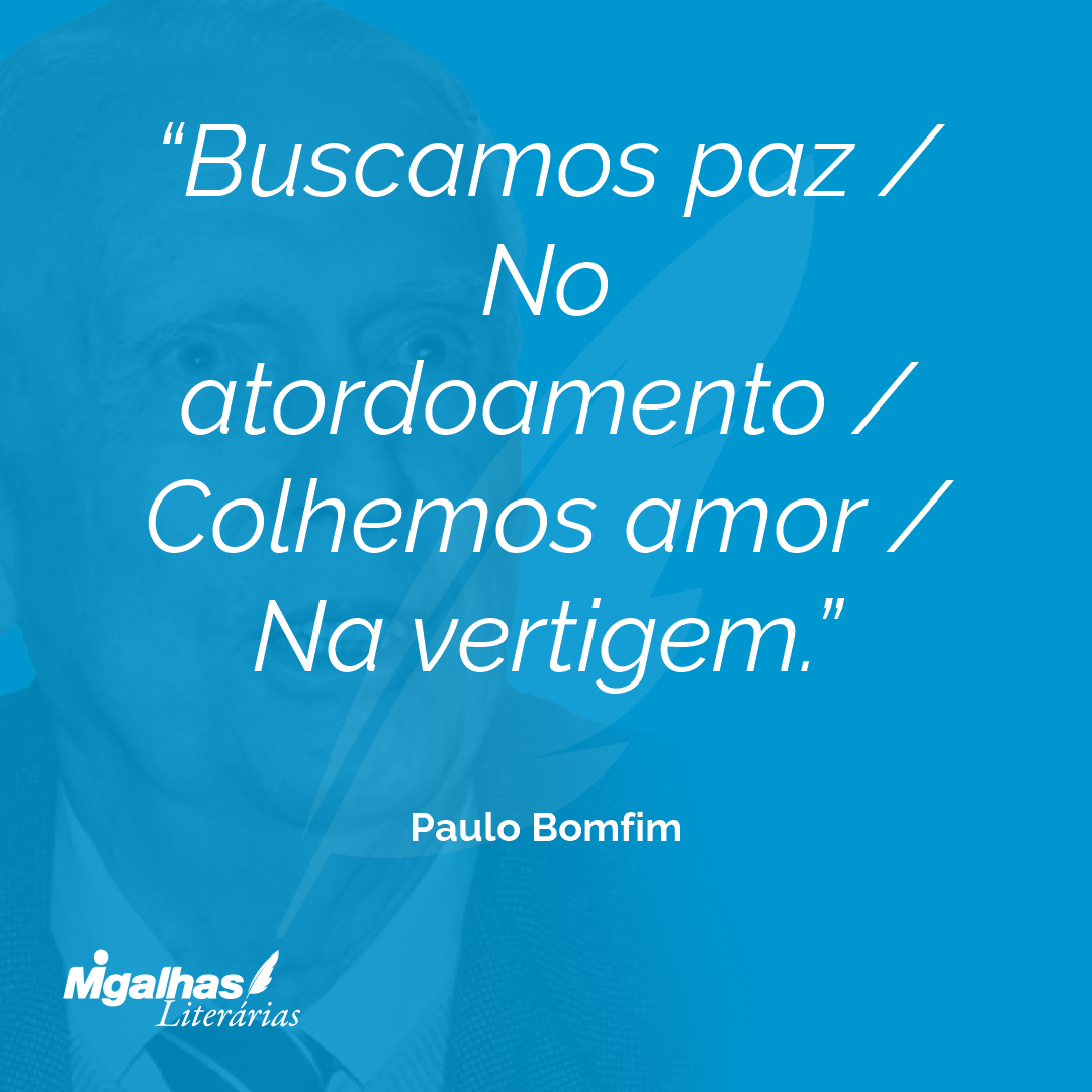Buscamos paz / No atordoamento / Colhemos amor / Na vertigem.