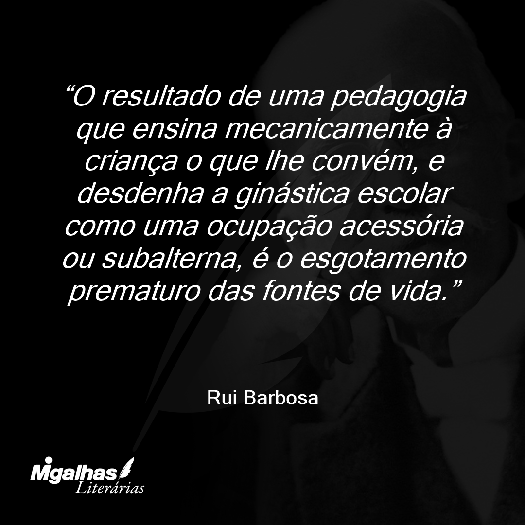 O resultado de uma pedagogia que ensina mecanicamente à criança o que lhe convém, e desdenha a ginástica escolar como uma ocupação acessória ou subalterna, é o esgotamento prematuro das fontes de vida.