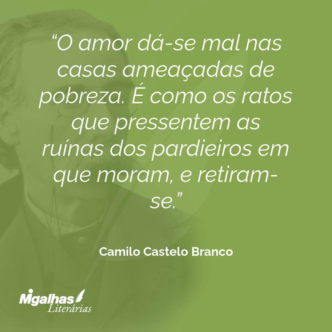 O amor dá-se mal nas casas ameaçadas de pobreza. É como os ratos que pressentem as ruínas dos pardieiros em que moram, e retiram-se.