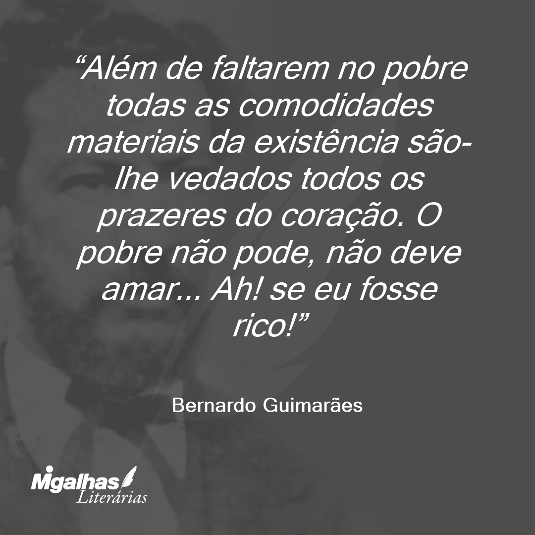 Além de faltarem no pobre todas as comodidades materiais da existência são-lhe vedados todos os prazeres do coração. O pobre não pode, não deve amar... Ah! se eu fosse rico!