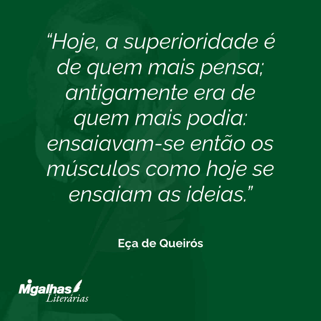 Hoje, a superioridade é de quem mais pensa; antigamente era de quem mais podia: ensaiavam-se então os músculos como hoje se ensaiam as ideias.