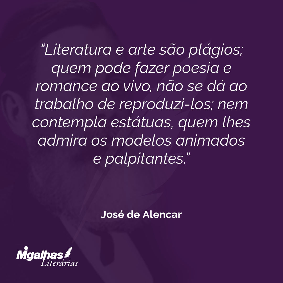 Literatura e arte são plágios; quem pode fazer poesia e romance ao vivo, não se dá ao trabalho de reproduzi-los; nem contempla estátuas, quem lhes admira os modelos animados e palpitantes.