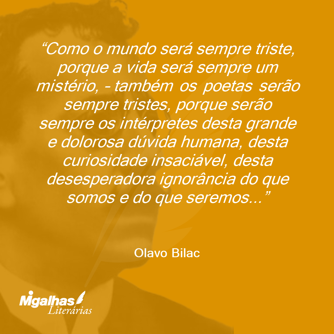 Como o mundo será sempre triste, porque a vida será sempre um mistério, – também os poetas serão sempre tristes, porque serão sempre os intérpretes desta grande e dolorosa dúvida humana, desta curiosidade insaciável, desta desesperadora ignorância do que somos e do que seremos...