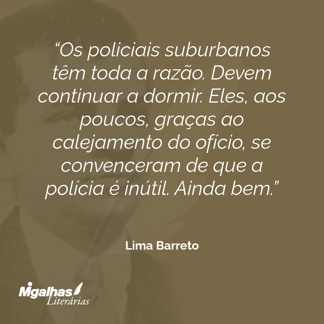 Os policiais suburbanos têm toda a razão. Devem continuar a dormir. Eles, aos poucos, graças ao calejamento do ofício, se convenceram de que a polícia é inútil. Ainda bem.