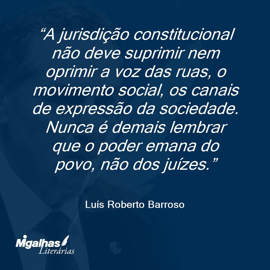 Luís Roberto Barroso | Trecho retirado do livro "Constituição, Democracia e Supremacia Judicial: Direito e Política no Brasil Contemporâneo. Migalhas (www.migalhas.com.br), 4 de fevereiro de 2010."