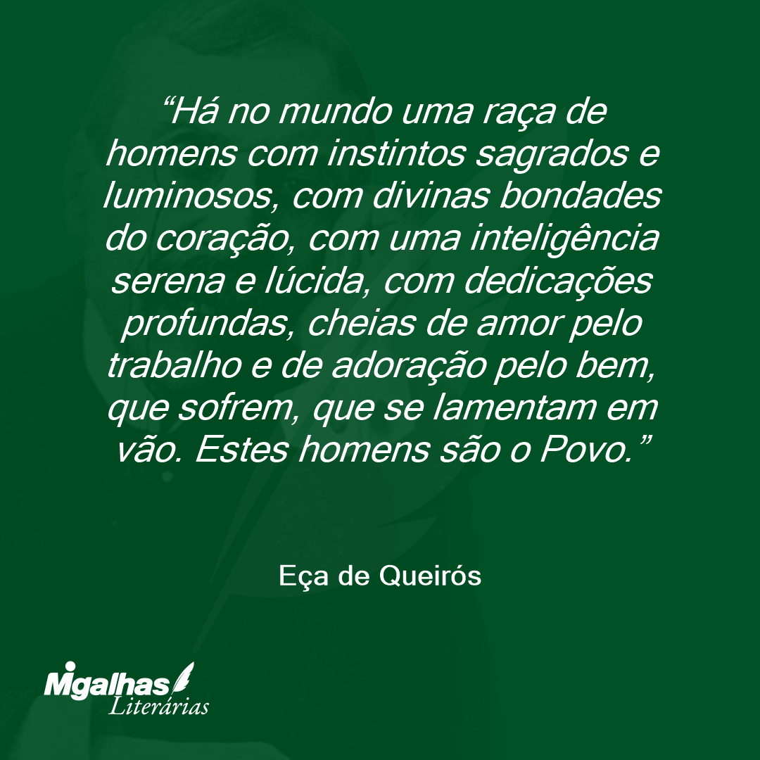 Há no mundo uma raça de homens com instintos sagrados e luminosos, com divinas bondades do coração, com uma inteligência serena e lúcida, com dedicações profundas, cheias de amor pelo trabalho e de adoração pelo bem, que sofrem, que se lamentam em vão. Estes homens são o Povo.