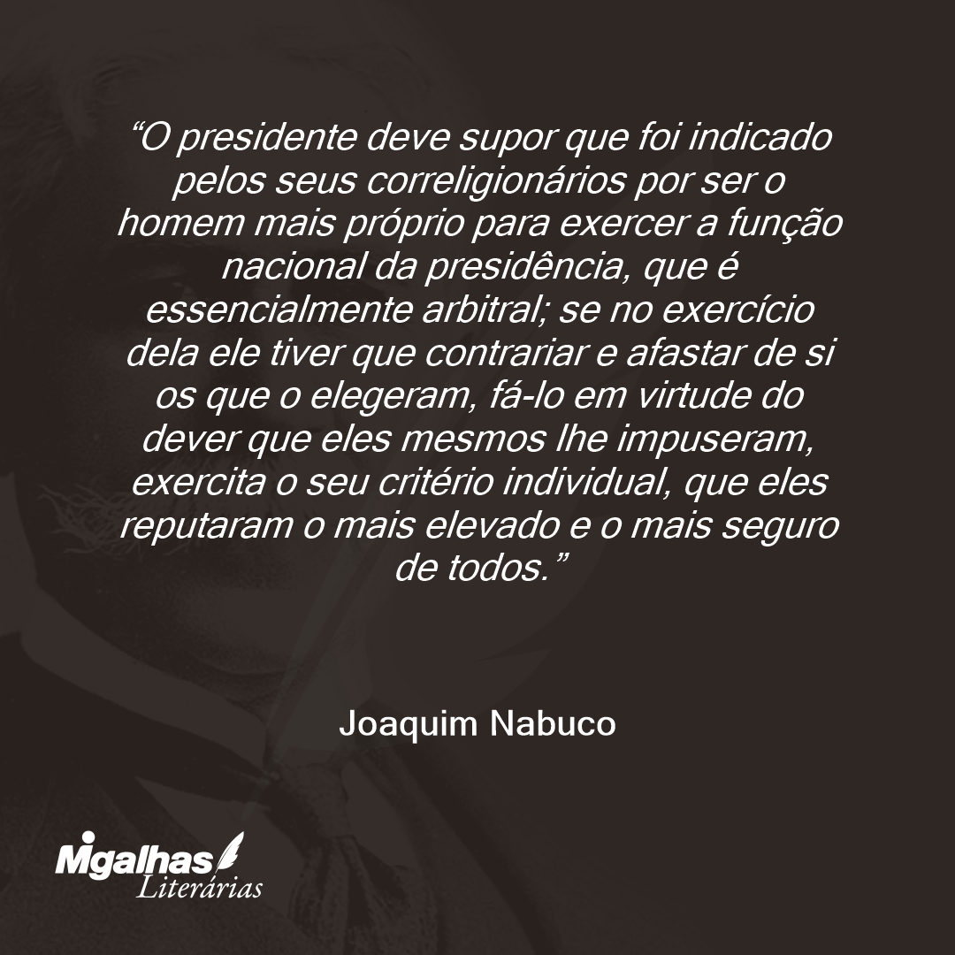 Joaquim Nabuco | Trecho retirado do livro "Balmaceda. A intervenção estrangeira durante a revolta de 1893. Obras Completas de Joaquim Nabuco II. São Paulo: Instituto Progresso Editorial S. A., 1949."