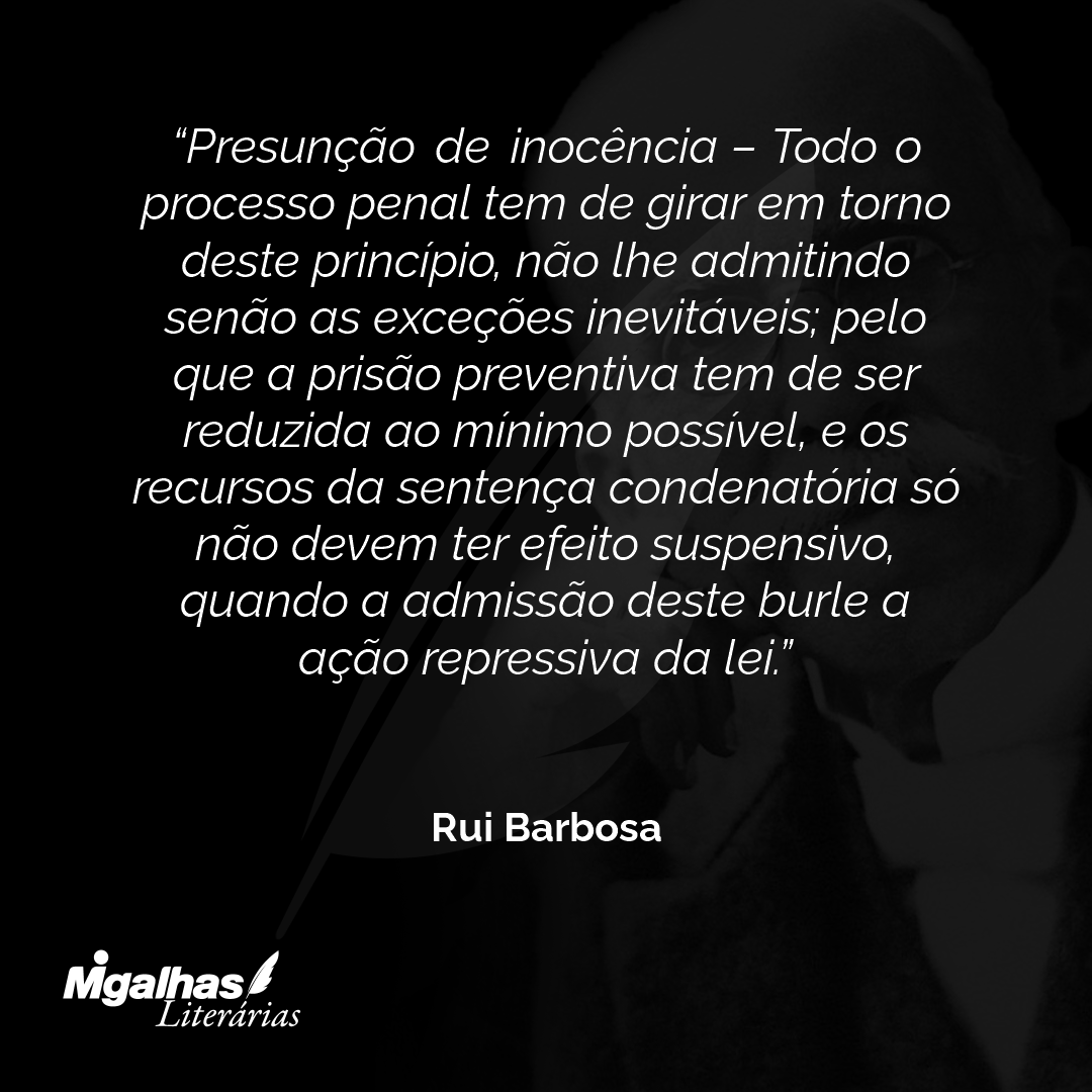 Se a lei viesse prescrever que o que se presume é o crime, a desonestidade, a mentira, a insânia; que antes de assumir a administração de seus bens, o indivíduo carece demonstrar solenemente o gozo da razão; que, até prova em contrário, a palavra do homem que depõe é suspeita de falsidade; que a infâmia é o conceito natural dos que não têm sentença judiciária de honestidade; que a defesa, e não a acusação, é que está obrigada à prova – tal subversão produziria a demência de qualquer dessas inovações em todo o organismo do direito, que os tribunais fatalmente haviam de renunciar a executá-las.