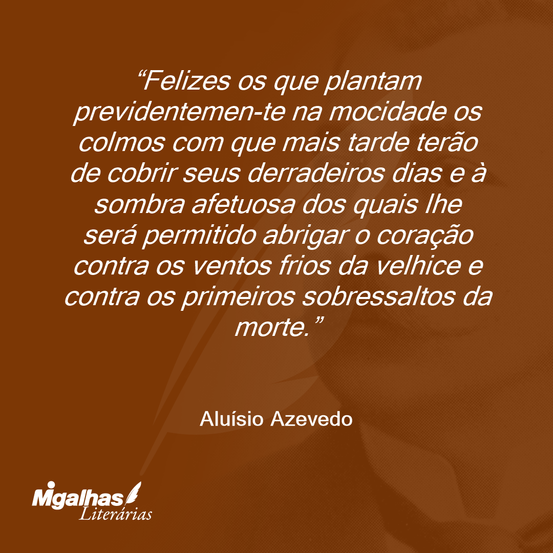 Felizes os que plantam previdentemen-te na mocidade os colmos com que mais tarde terão de cobrir seus derradeiros dias e à sombra afetuosa dos quais lhe será permitido abrigar o coração contra os ventos frios da velhice e contra os primeiros sobressaltos da morte.