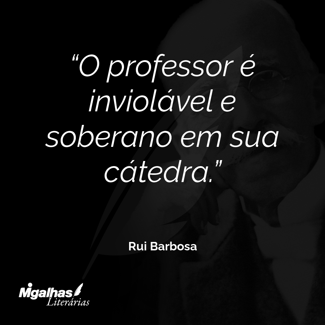 A cátedra de professor não pode ser senão a homenagem rendida à superioridade do mais digno, venha de onde vier, chegue embora ao ensino mais tarde que os seus competidores, tenha embora menos anos de magistério ou de estudos profissionais e menos cabelos brancos, – uma vez que o seu mérito se imponha a todos, e a todos sobrepuje.