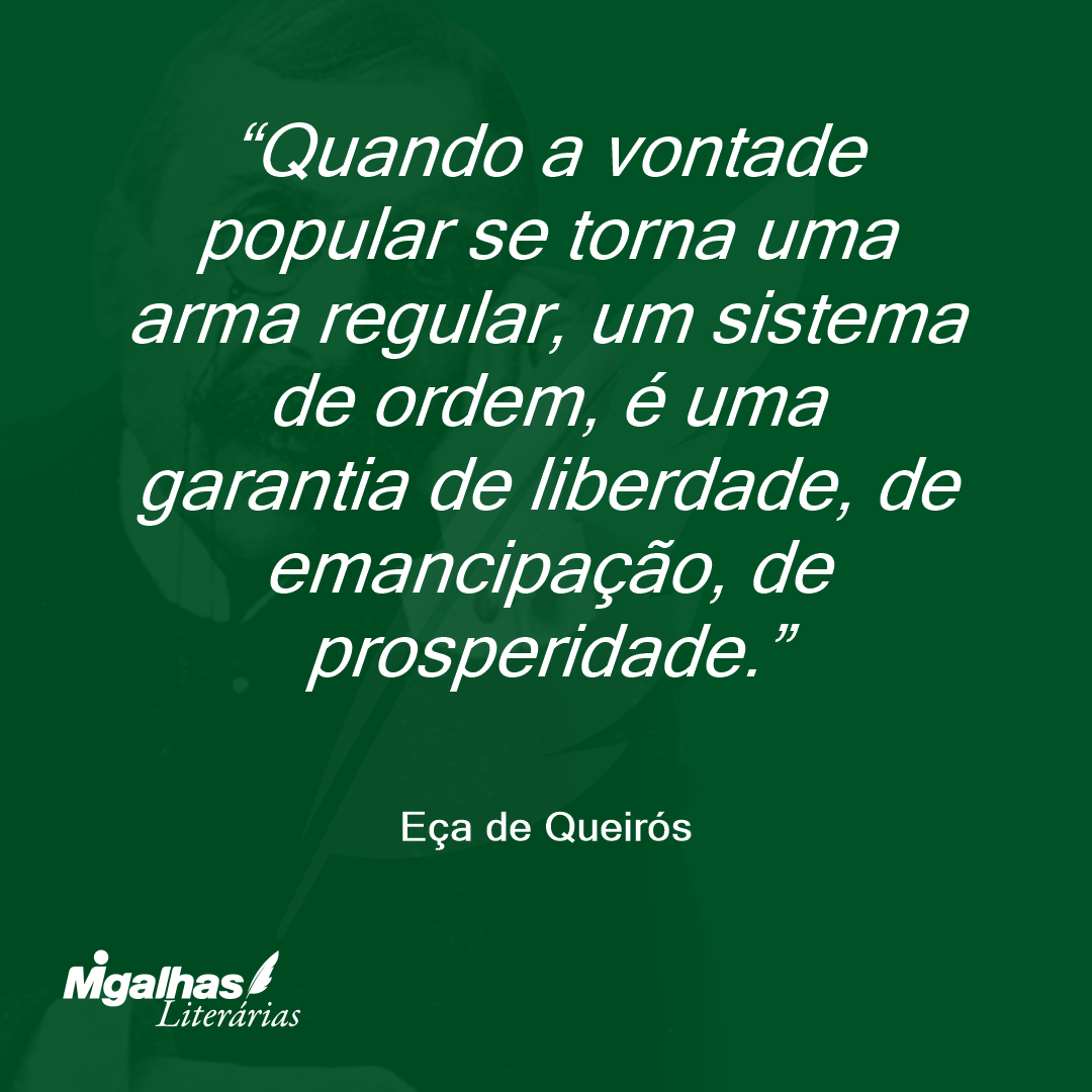 Quando a vontade popular se torna uma arma regular, um sistema de ordem, é uma garantia de liberdade, de emancipação, de prosperidade.
