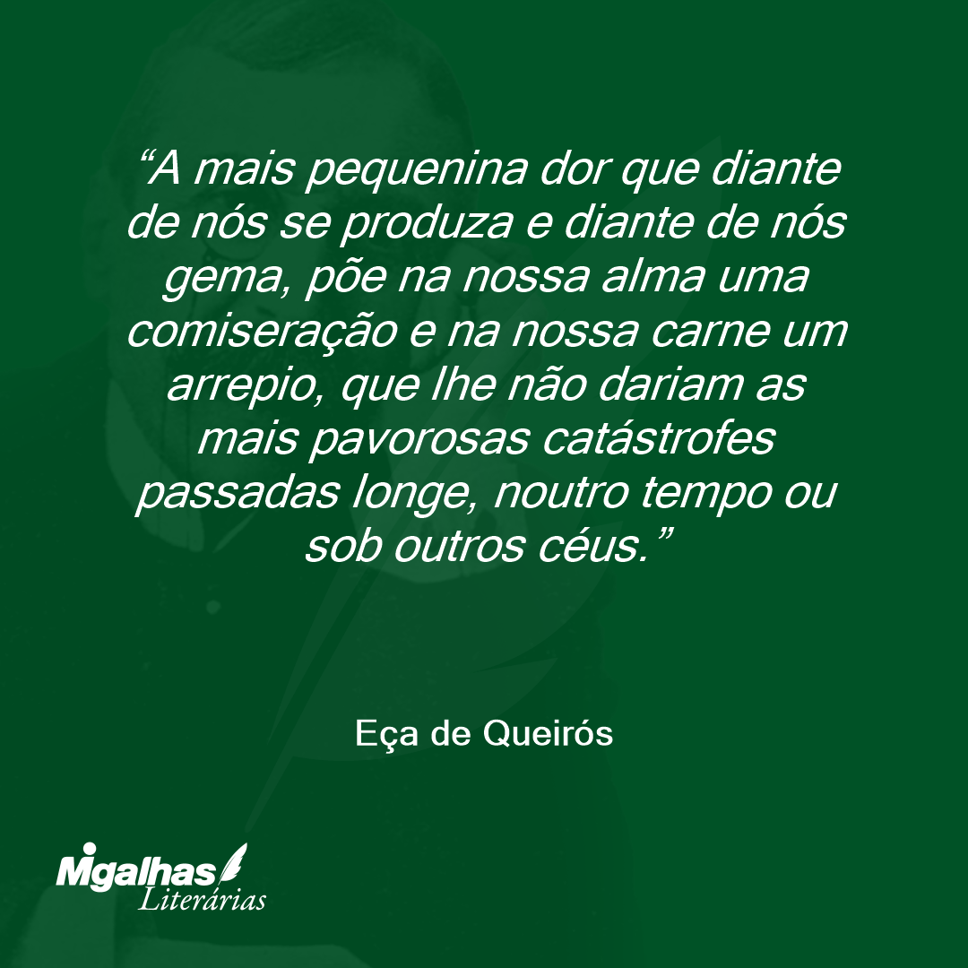 A mais pequenina dor que diante de nós se produza e diante de nós gema, põe na nossa alma uma comiseração e na nossa carne um arrepio, que lhe não dariam as mais pavorosas catástrofes passadas longe, noutro tempo ou sob outros céus.