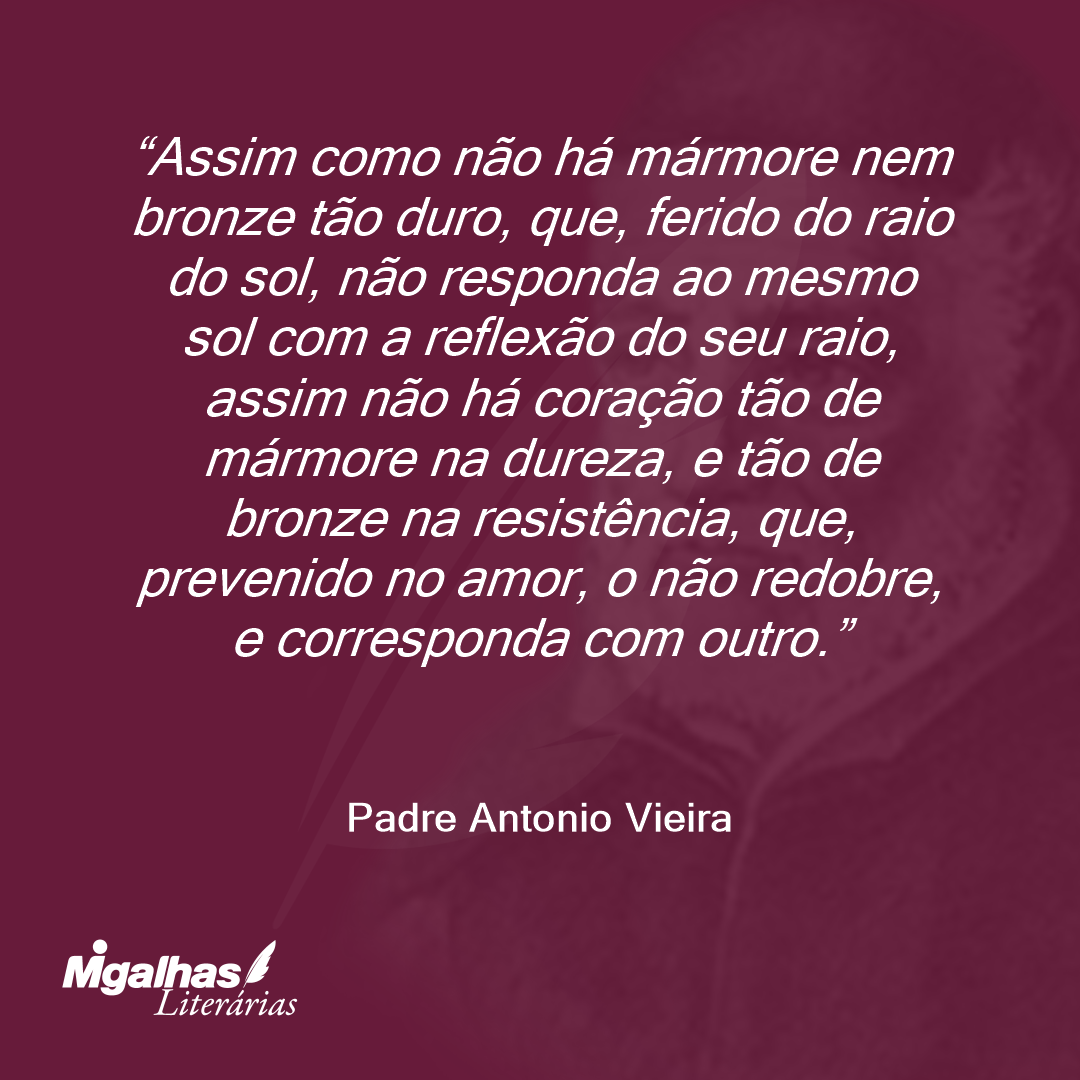 Assim como não há mármore nem bronze tão duro, que, ferido do raio do sol, não responda ao mesmo sol com a reflexão do seu raio, assim não há coração tão de mármore na dureza, e tão de bronze na resistência, que, prevenido no amor, o não redobre, e corresponda com outro.