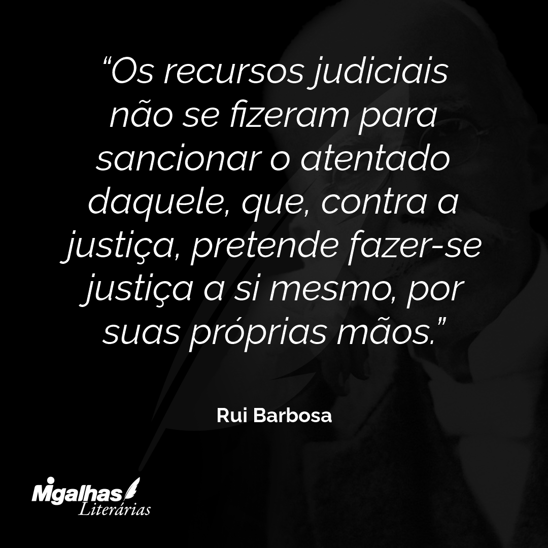 Os recursos judiciais não se fizeram para sancionar o atentado daquele, que, contra a justiça, pretende fazer-se justiça a si mesmo, por suas próprias mãos.