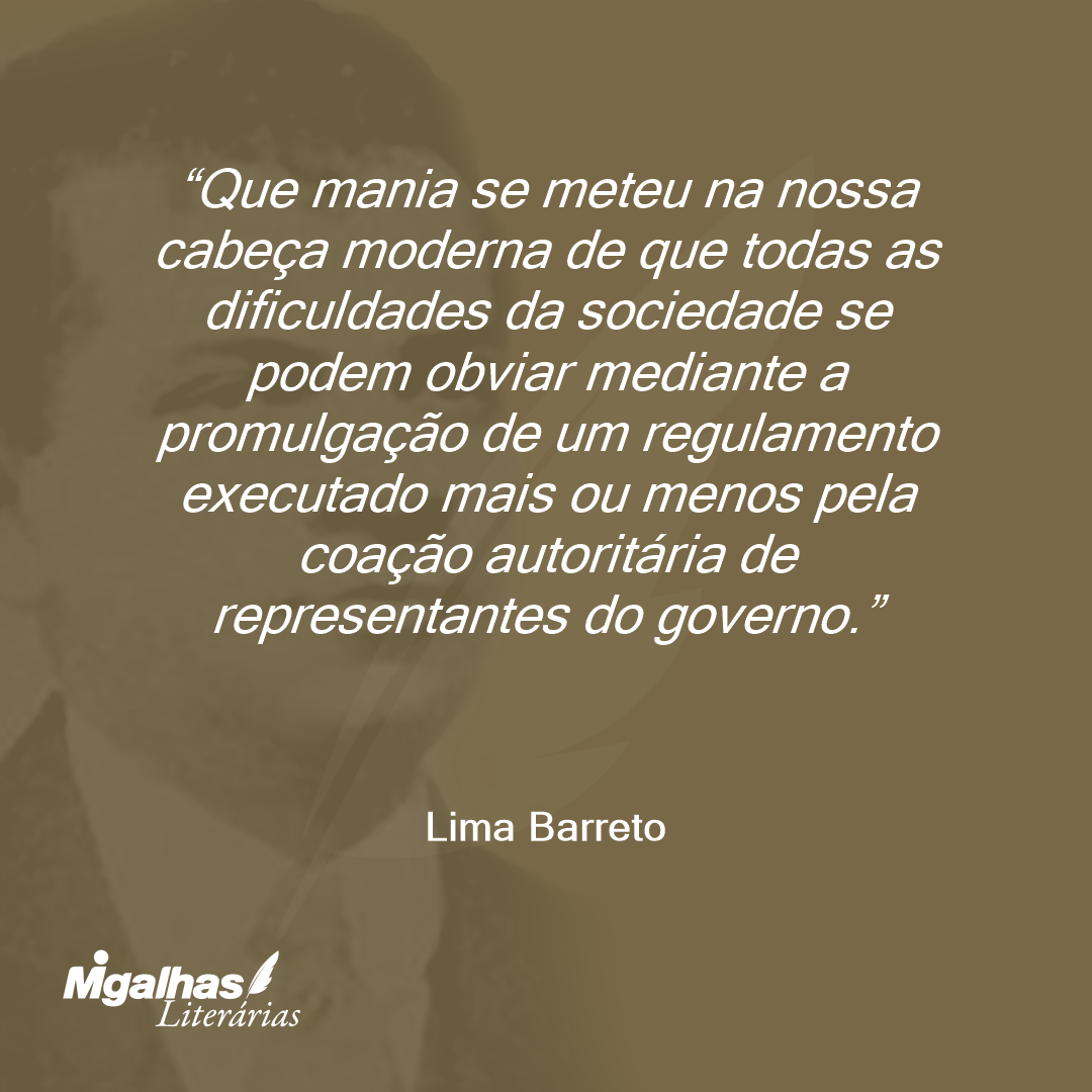 Que mania se meteu na nossa cabeça moderna de que todas as dificuldades da sociedade se podem obviar mediante a promulgação de um regulamento executado mais ou menos pela coação autoritária de representantes do governo.