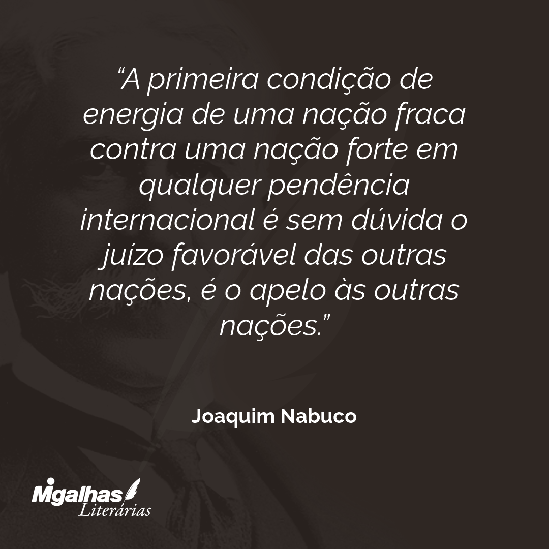 A primeira condição de energia de uma nação fraca contra uma nação forte em qualquer pendência internacional é sem dúvida o juízo favorável das outras nações, é o apelo às outras nações.