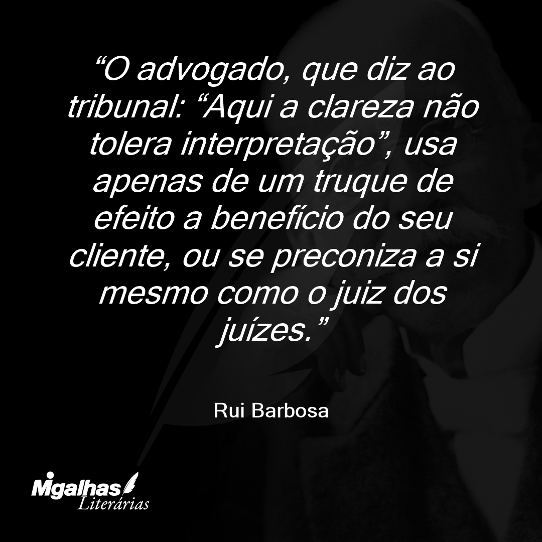O advogado, que diz ao tribunal: “Aqui a clareza não tolera interpretação”, usa apenas de um truque de efeito a benefício do seu cliente, ou se preconiza a si mesmo como o juiz dos juízes.
