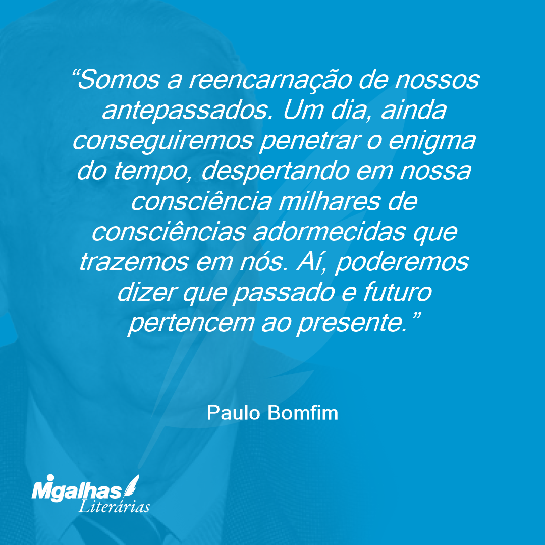 Somos a reencarnação de nossos antepassados. Um dia, ainda conseguiremos penetrar o enigma do tempo, despertando em nossa consciência milhares de consciências adormecidas que trazemos em nós. Aí, poderemos dizer que passado e futuro pertencem ao presente.