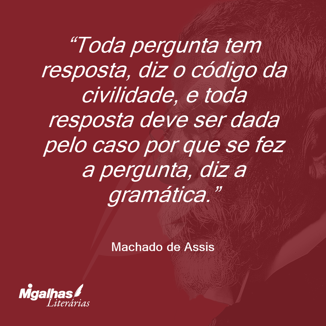 Toda pergunta tem resposta, diz o código da civilidade, e toda resposta deve ser dada pelo caso por que se fez a pergunta, diz a gramática.