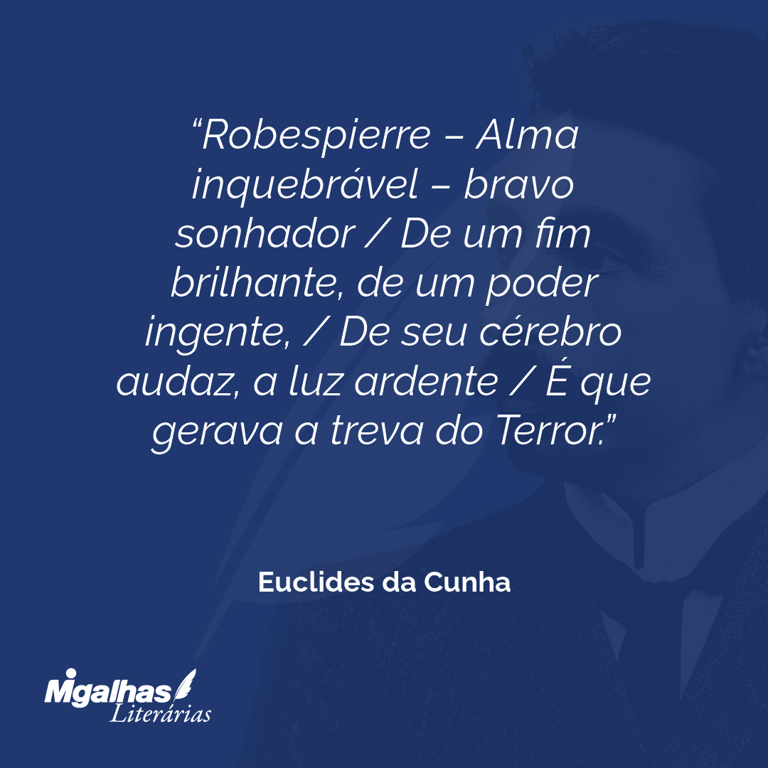 Robespierre – Alma inquebrável – bravo sonhador / De um fim brilhante, de um poder ingente, / De seu cérebro audaz, a luz ardente / É que gerava a treva do Terror.