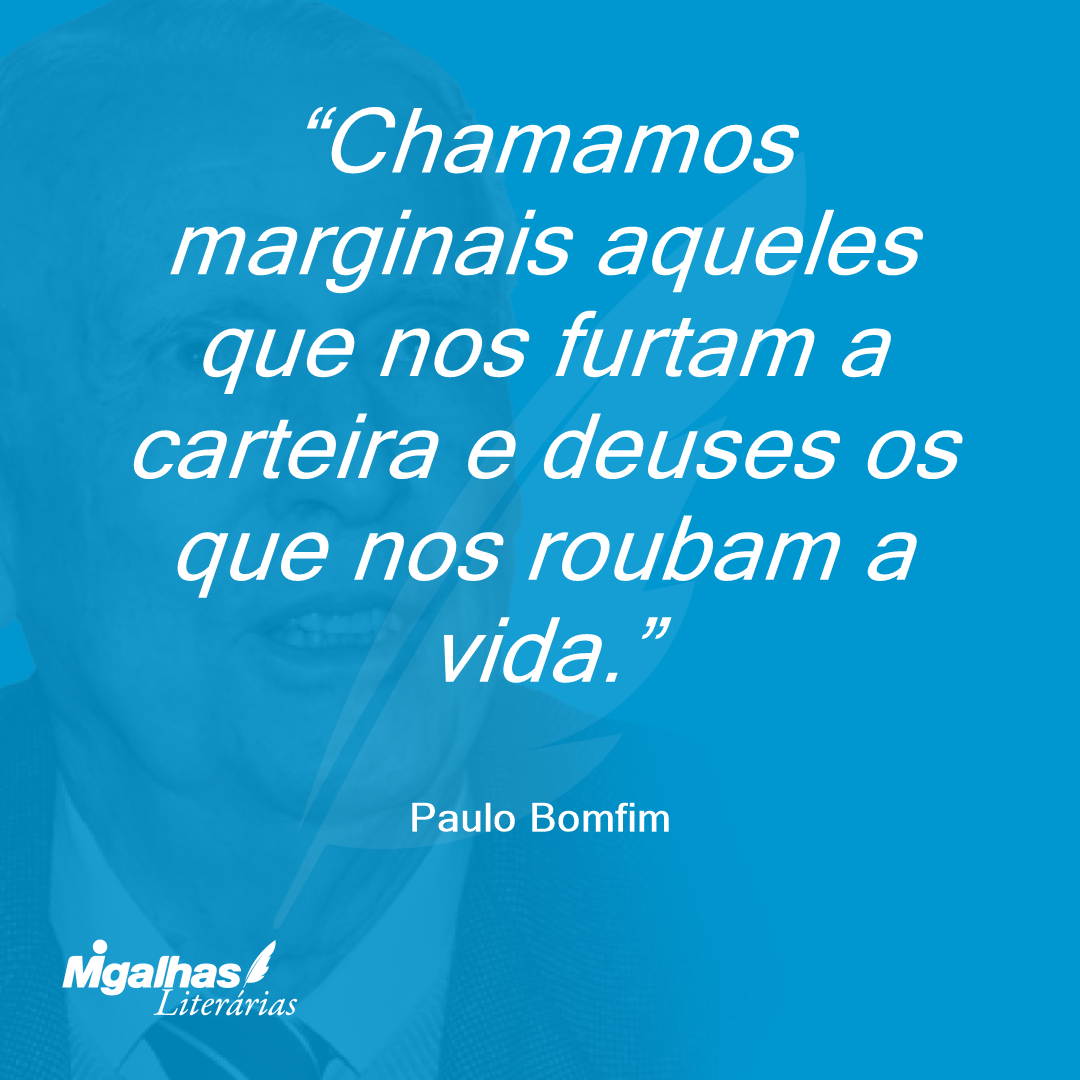Chamamos marginais aqueles que nos furtam a carteira e deuses os que nos roubam a vida.