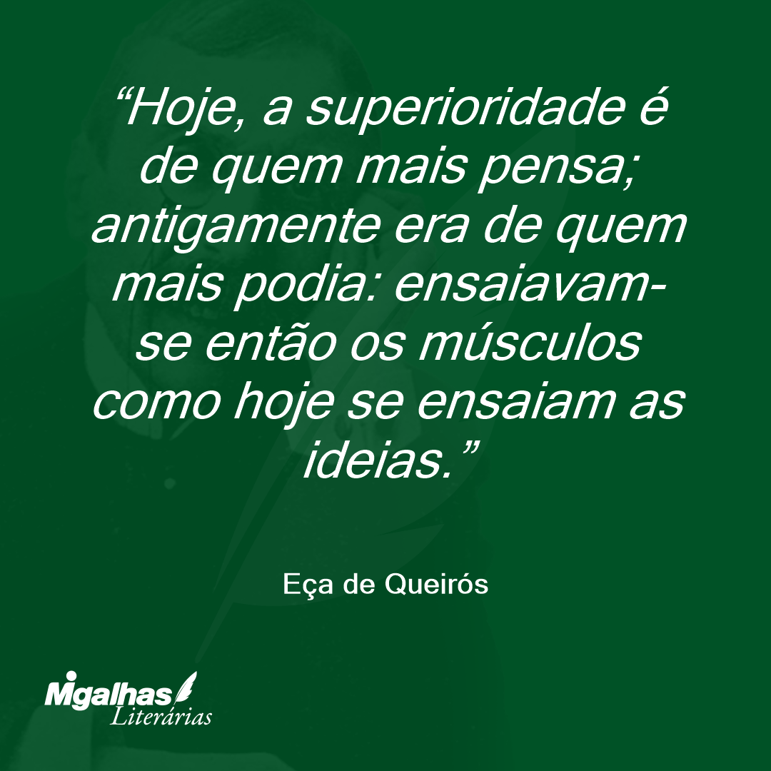Hoje, a superioridade é de quem mais pensa; antigamente era de quem mais podia: ensaiavam-se então os músculos como hoje se ensaiam as ideias.