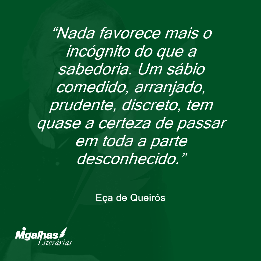 Nada favorece mais o incógnito do que a sabedoria. Um sábio comedido, arranjado, prudente, discreto, tem quase a certeza de passar em toda a parte desconhecido.