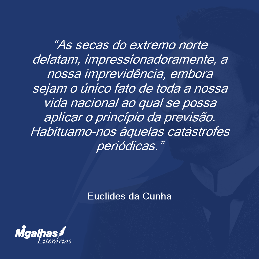As secas do extremo norte delatam, impressionadoramente, a nossa imprevidência, embora sejam o único fato de toda a nossa vida nacional ao qual se possa aplicar o princípio da previsão. Habituamo-nos àquelas catástrofes periódicas.