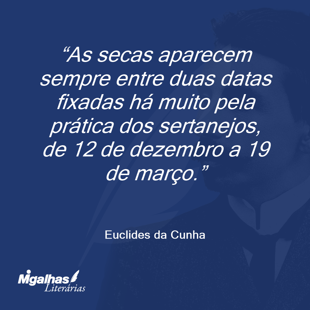 As secas aparecem sempre entre duas datas fixadas há muito pela prática dos sertanejos, de 12 de dezembro a 19 de março.