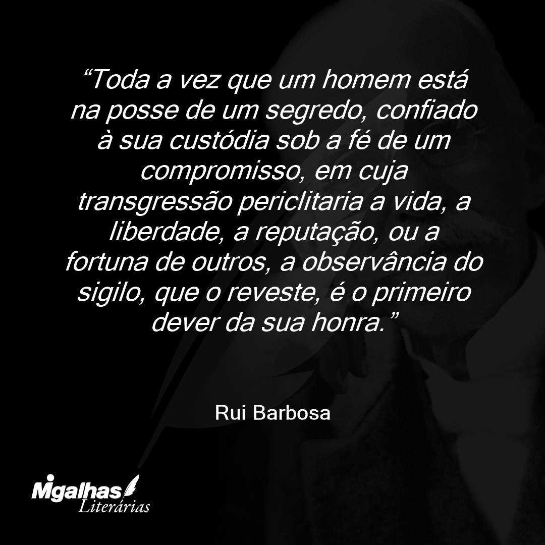 Toda a vez que um homem está na posse de um segredo, confiado à sua custódia sob a fé de um compromisso, em cuja transgressão periclitaria a vida, a liberdade, a reputação, ou a fortuna de outros, a observância do sigilo, que o reveste, é o primeiro dever da sua honra.