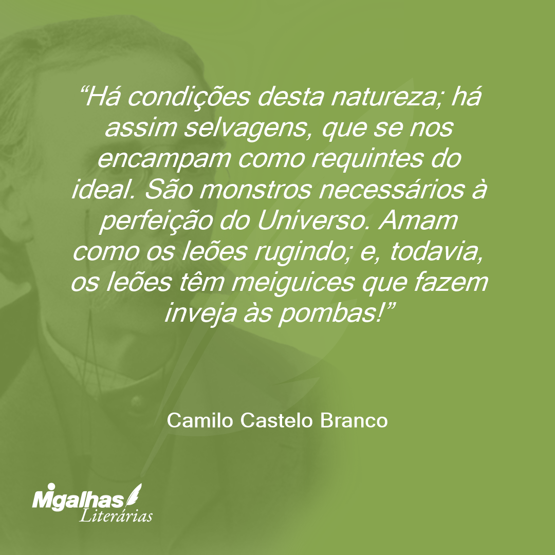 Há condições desta natureza; há assim selvagens, que se nos encampam como requintes do ideal. São monstros necessários à perfeição do Universo. Amam como os leões rugindo; e, todavia, os leões têm meiguices que fazem inveja às pombas!