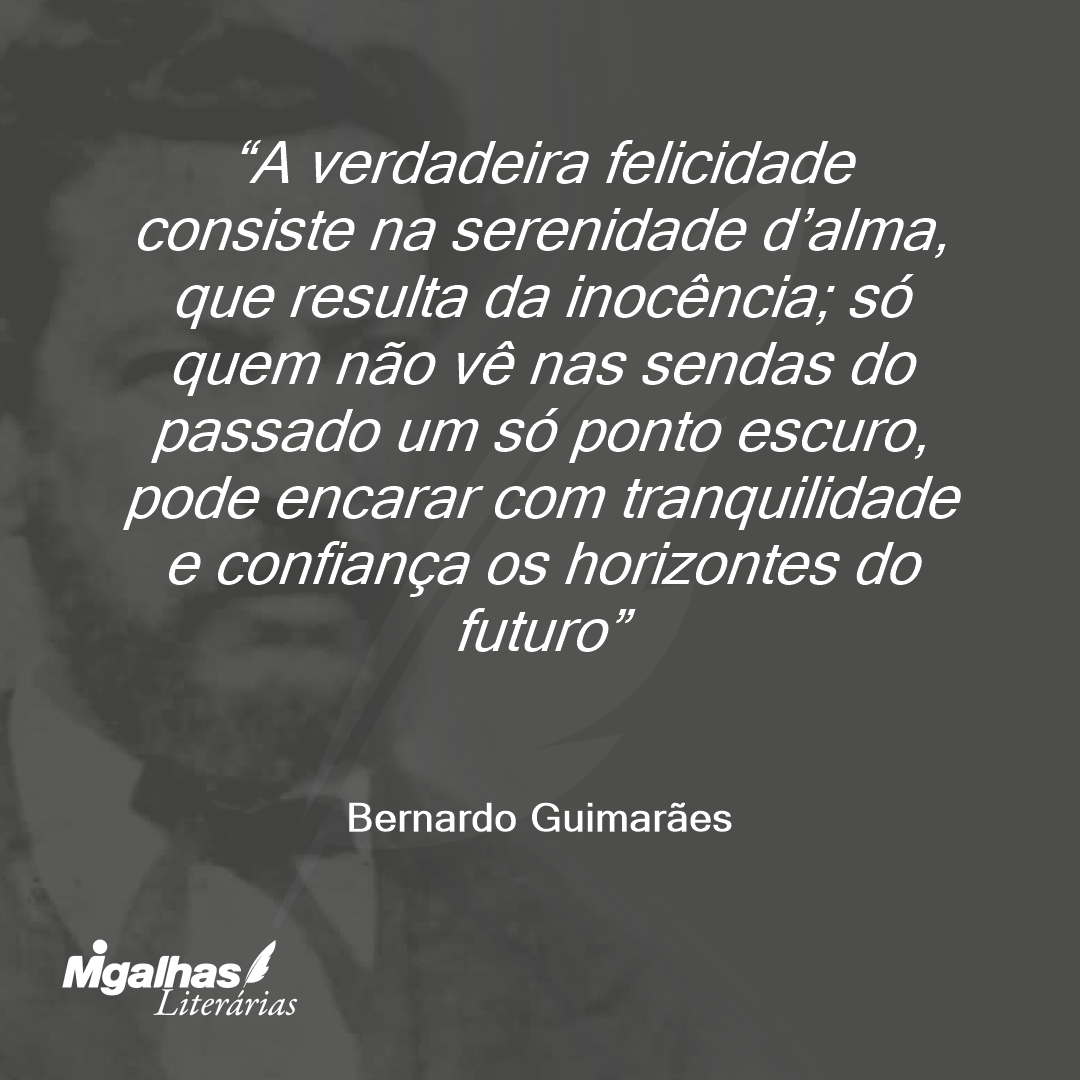 A verdadeira felicidade consiste na serenidade d’alma, que resulta da inocência; só quem não vê nas sendas do passado um só ponto escuro, pode encarar com tranquilidade e confiança os horizontes do futuro