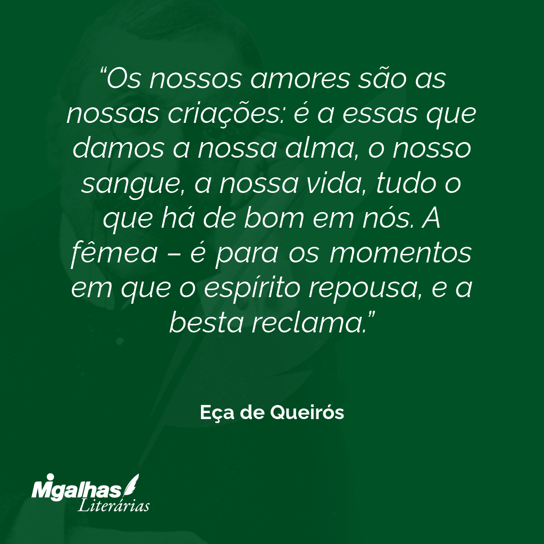 Os nossos amores são as nossas criações: é a essas que damos a nossa alma, o nosso sangue, a nossa vida, tudo o que há de bom em nós. A fêmea – é para os momentos em que o espírito repousa, e a besta reclama.