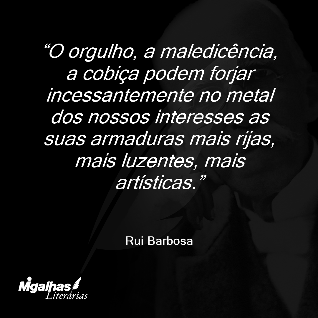 O orgulho, a maledicência, a cobiça podem forjar incessantemente no metal dos nossos interesses as suas armaduras mais rijas, mais luzentes, mais artísticas.