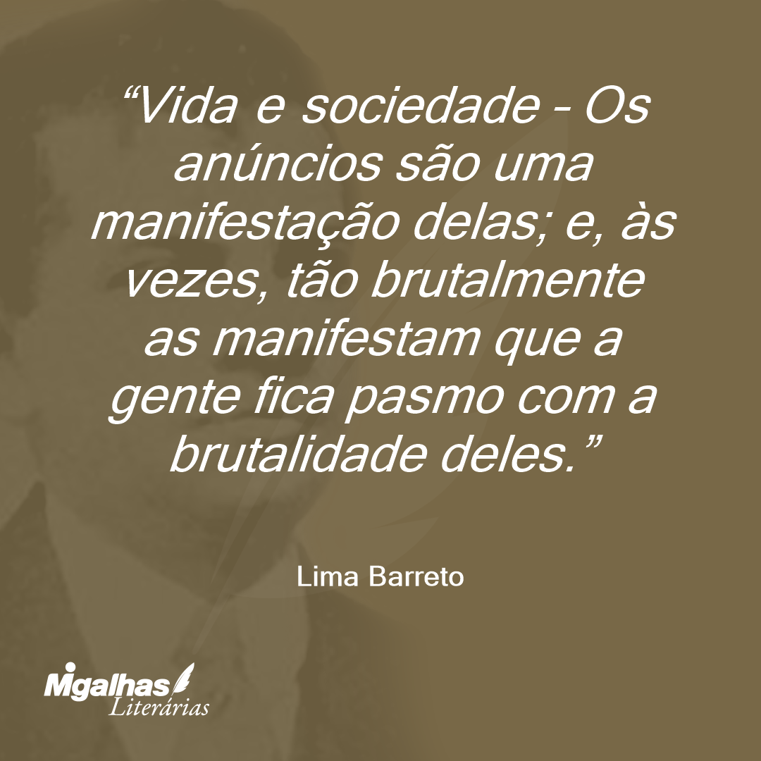 Vida e sociedade – Os anúncios são uma manifestação delas; e, às vezes, tão brutalmente as manifestam que a gente fica pasmo com a brutalidade deles.