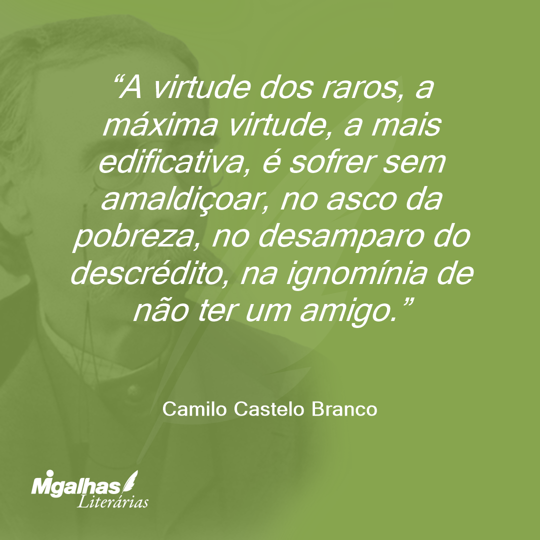 A virtude dos raros, a máxima virtude, a mais edificativa, é sofrer sem amaldiçoar, no asco da pobreza, no desamparo do descrédito, na ignomínia de não ter um amigo.
