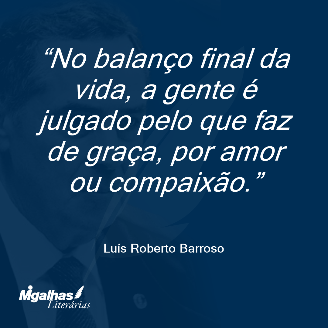 No balanço final da vida, a gente é julgado pelo que faz de graça, por amor ou compaixão.