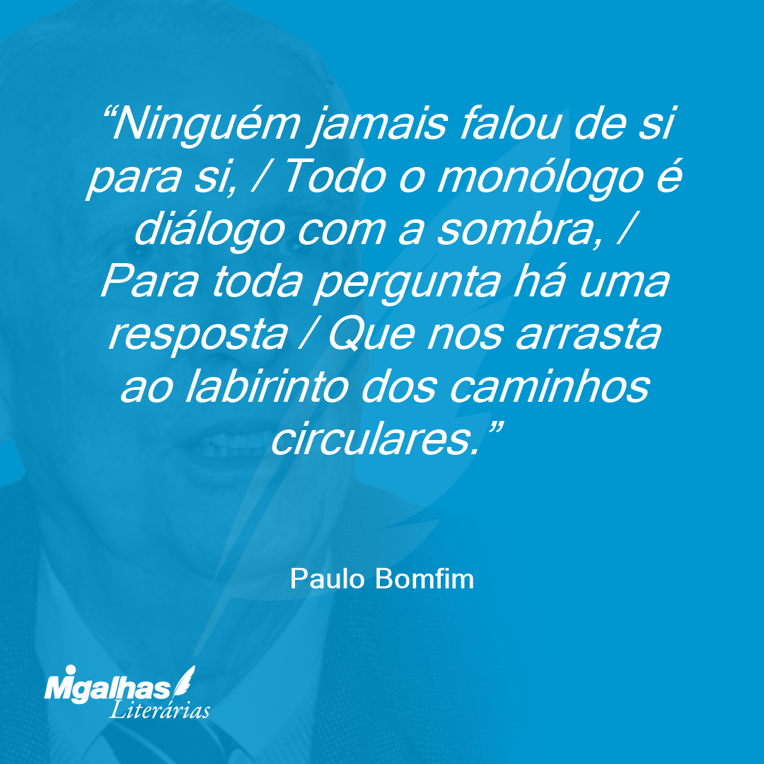 Ninguém jamais falou de si para si, / Todo o monólogo é diálogo com a sombra, / Para toda pergunta há uma resposta / Que nos arrasta ao labirinto dos caminhos circulares.