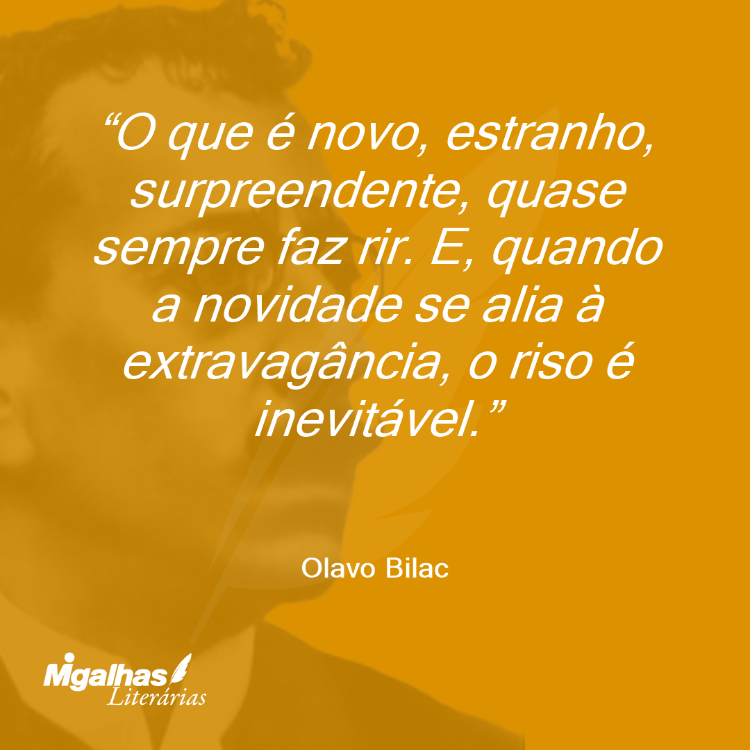 O que é novo, estranho, surpreendente, quase sempre faz rir. E, quando a novidade se alia à extravagância, o riso é inevitável.