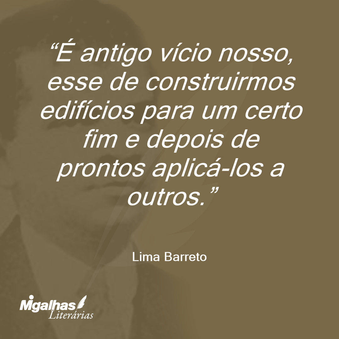 É antigo vício nosso, esse de construirmos edifícios para um certo fim e depois de prontos aplicá-los a outros.