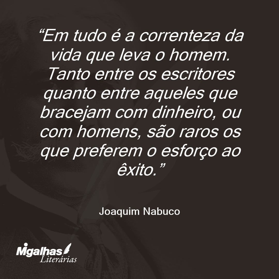 Em tudo é a correnteza da vida que leva o homem. Tanto entre os escritores quanto entre aqueles que bracejam com dinheiro, ou com homens, são raros os que preferem o esforço ao êxito.
